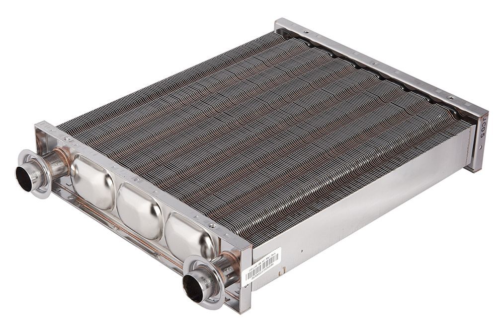 Первичный теплообменник из нержавеющей стали. Основной теплообменник абсорбирует тепло от сгораемого газа, выделяемого горелкой и передает его к отопительным трубам, и вторичному теплообменнику.